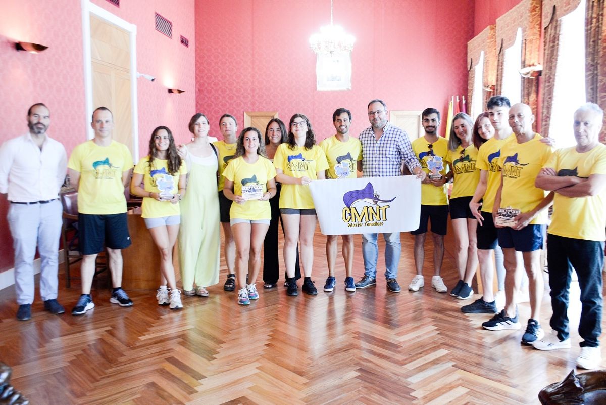 El salón de plenos del Ayuntamiento de Tomelloso ha sido escenario este jueves de una emotiva recepción al equipo Máster Natación Tomelloso, en reconocimiento a la brillante temporada que han protagonizado. El acto ha contado con la presencia de una amplia representación de componentes del club, así como del alcalde de la ciudad, Javier Navarro, y el concejal de Deporte, Benjamín de Sebastián.