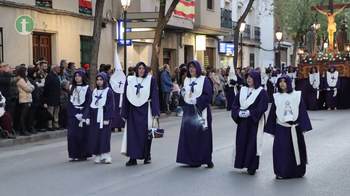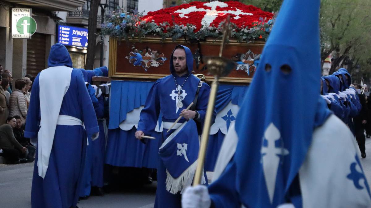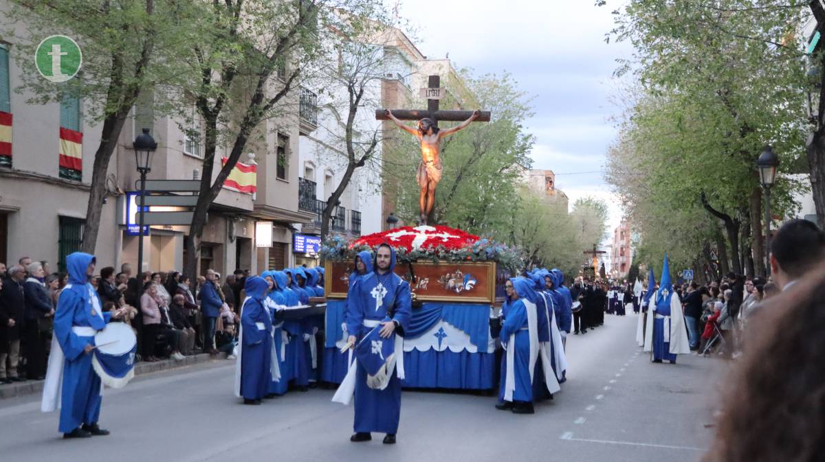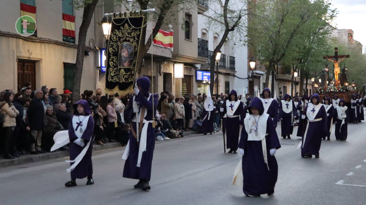 Abrió la procesión la Hermandad del Santísimo Cristo de la Misericordia, fundada en 1988, con dos pasos: La Crucifixión, portado por mujeres, y el Cristo de la Misericordia, llevado a hombros por hombres. Las imágenes, talladas en los talleres Salmerón y por el escultor José Lozano Roca respectivamente, avanzaron entre tambores y silencio. Los hermanos vistieron túnica azul, capa y fajín beige, capillo azul y guantes blancos, portando el báculo con cáliz y cruz de Santiago como atributo.