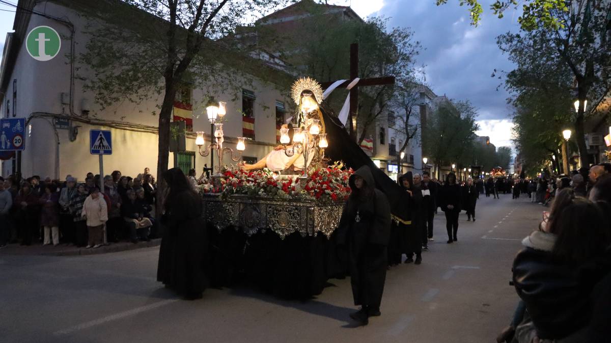 Tomelloso vivió este Viernes Santo una de las procesiones más solemnes y emotivas de su Semana Santa con el Entierro de Cristo, que partió a las 20:30 h desde la Parroquia de la Asunción de Nuestra Señora. En una tarde marcada por el buen tiempo primaveral, con temperatura agradable y algunas rachas de viento, cientos de personas se concentraron en las calles de Tomelloso para acompañar en silencio a las imágenes que narran los últimos momentos del Señor.