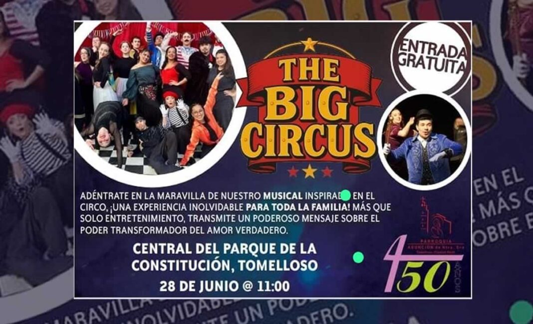 Este sábado, 28 de junio, a las 11:00 de la mañana, el centro del Parque de la Constitución de Tomelloso se transformará en escenario de “The Big Circus”, un espectáculo dirigido a todos los públicos que forma parte de la programación conmemorativa por los 450 años de la Parroquia de la Asunción de Nuestra Señora.