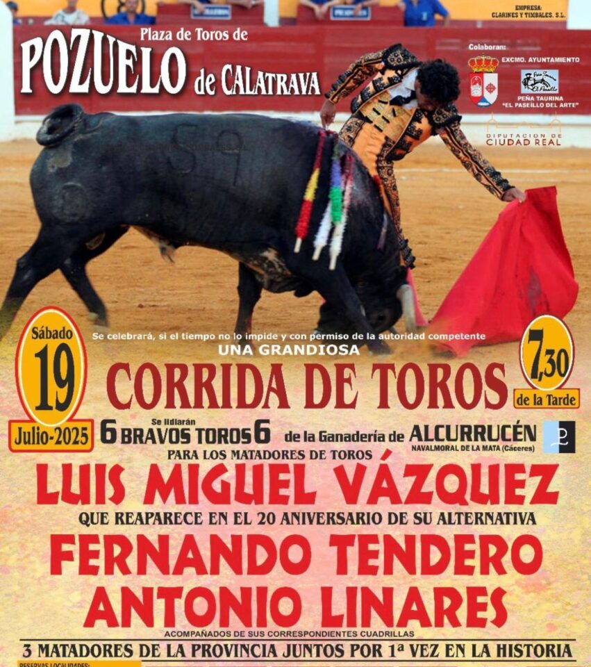 El cartel, con fecha para el 19 de julio, estará compuesto por la siguiente terna: Luis Miguel Vázquez, que reaparecerá en su 20 aniversario de alternativa; Fernando Tendero y Antonio Linares. Se trata de un cartel de tres toreros ciudadrealeños que lidiarán una corrida de la prestigiosa ganadería de ALCURRUCEN, que ha suscitado interés dentro de la provincia.