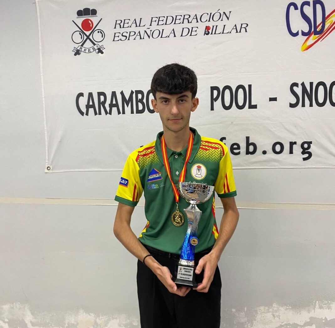 Cabe destacar que el joven tomellosero había logrado el título de subcampeón en billar a tres bandas hace un año, pero en esta nueva ocasión se ha alzado con la primera posición.