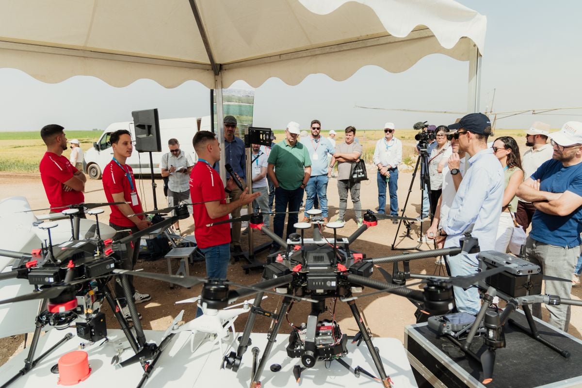 Las cuatro demostraciones tecnológicas se celebraron en dos zonas diferenciadas para mostrar distintas tecnologías que se han dado cita en el encuentro empresarial. En esta ocasión corrieron a cargo de las empresas: ACOEMAN, que abordó las instalaciones e integración de sistemas fotovoltaicos; Nelson y Valmont, con una exposición sobre riego de precisión con pivots y lineales; Azud, junto al Consejo Superior de Investigaciones Científicas (CSIC), que mostraron una solución para evaluar los sistemas de riego por goteo de precisión; y los grupos de investigación PAFYC (Precisión Agroforestal y Cartografía) y Teledetección y SIG de la UCLM, que realizaron una exhibición de drones para la monitorización de cultivos.