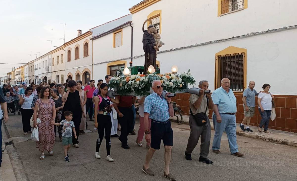 San Antonio de Padua ha salido este viernes, 13 de junio, en procesión por las calles de su barrio, en una de las celebraciones más queridas por los vecinos. La jornada comenzó con una misa en la parroquia de San Pedro, oficiada por el párroco José Luis Merino, que concluyó con la tradicional bendición de los panes.