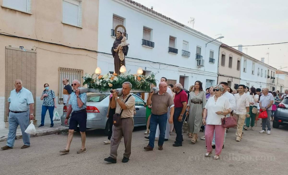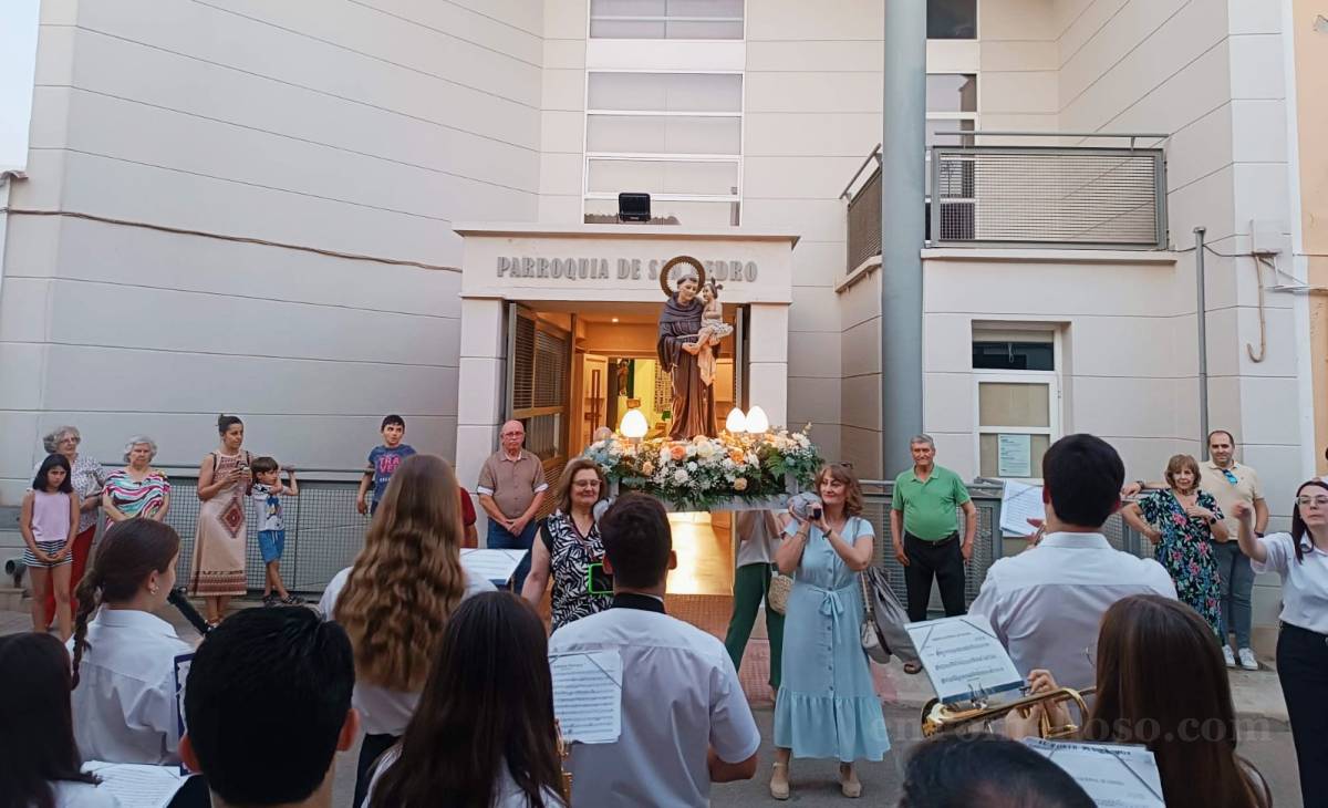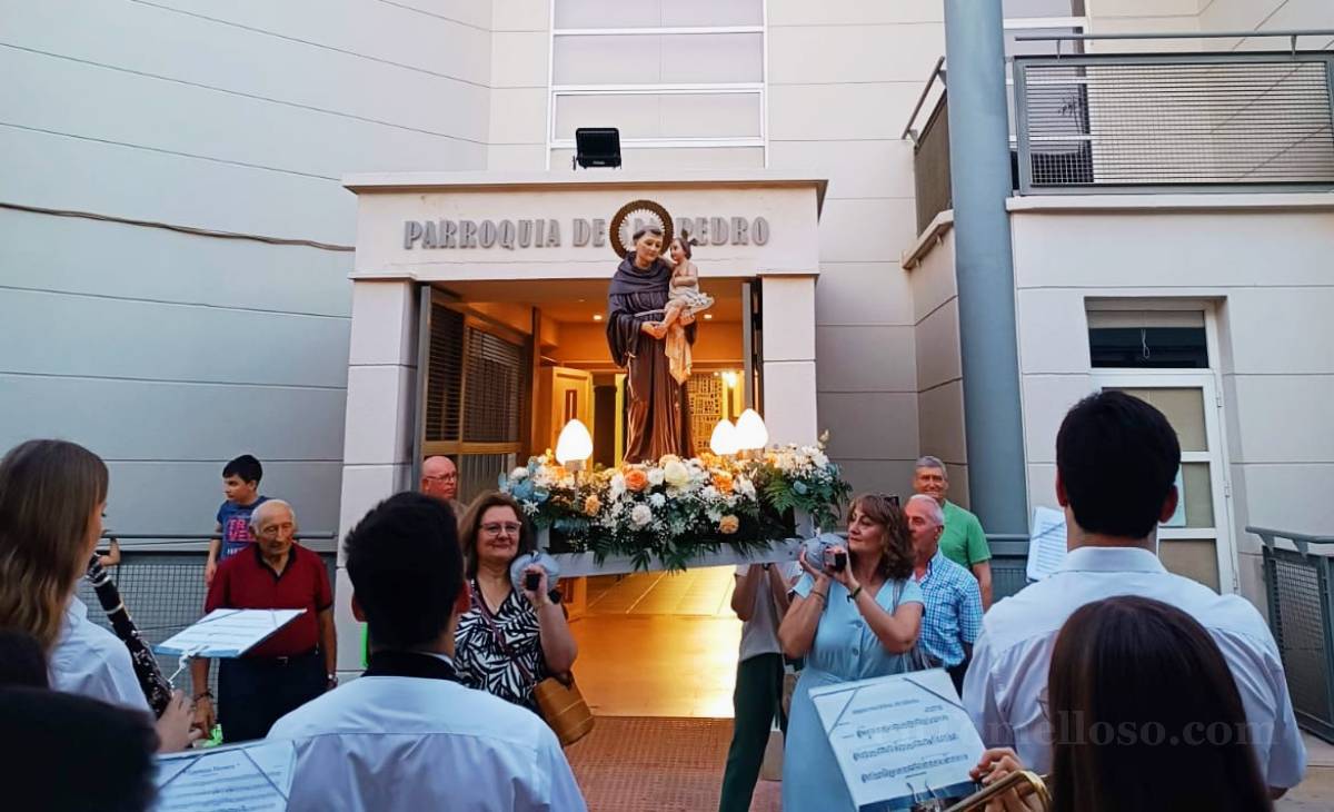 Tras el acto litúrgico, la procesión partió desde la iglesia y recorrió diversas calles del barrio, seguida por numerosos devotos. Abría el cortejo la Banda Santa Cecilia, que acompañó con su música el paso de la imagen de San Antonio.