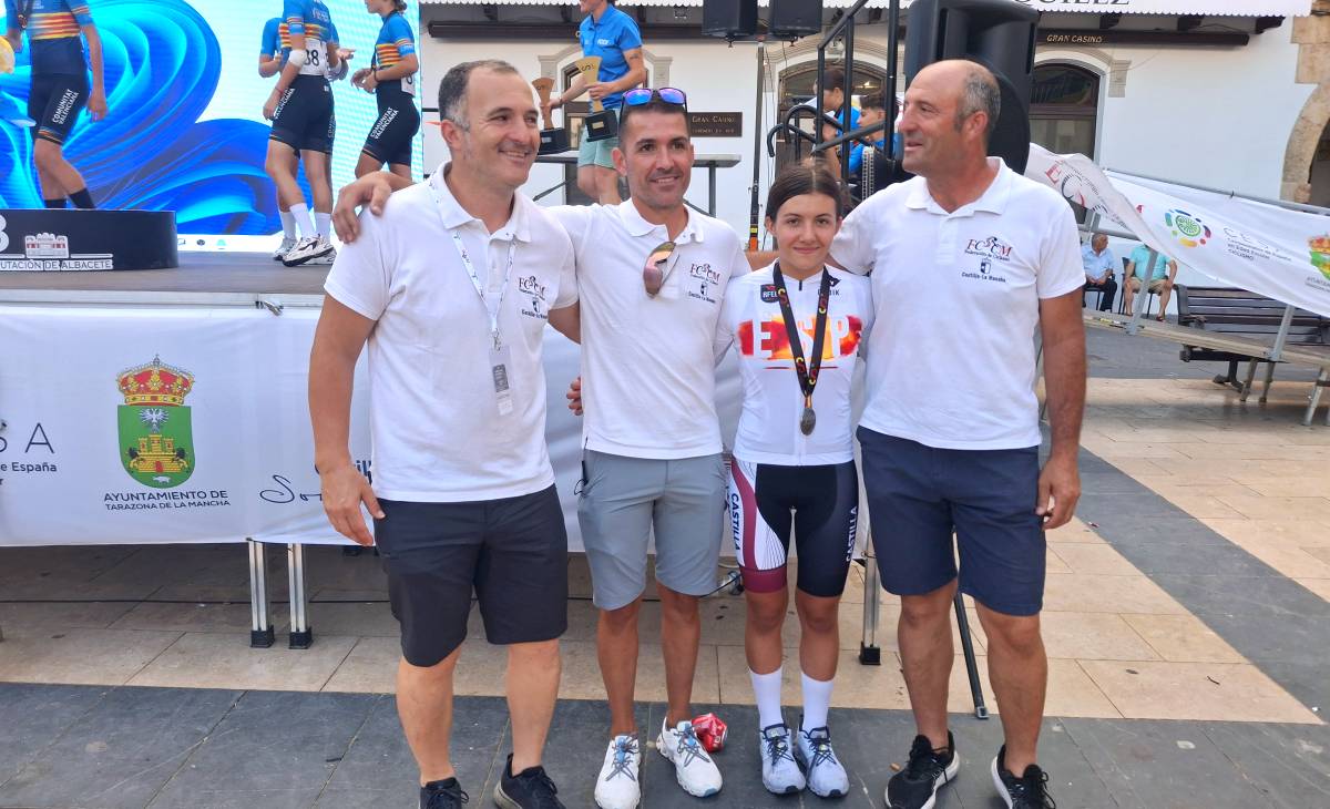 Silvia Castillejos, ciclista infantil de Tomelloso, se ha proclamado Campeona de España en la modalidad de ciclismo en línea durante los Campeonatos de España de deporte escolar celebrados en la localidad albaceteña de Tarazona de La Mancha.