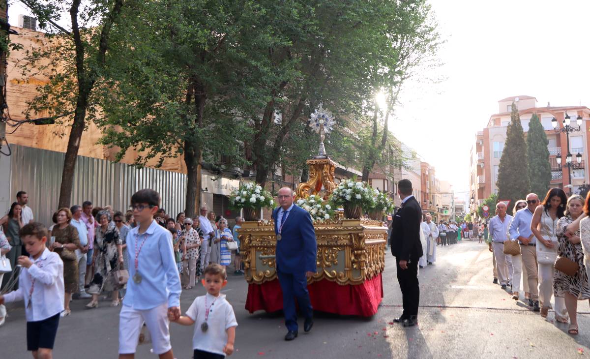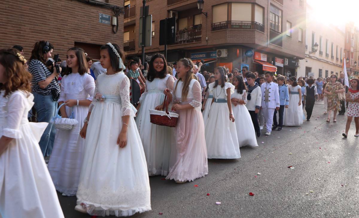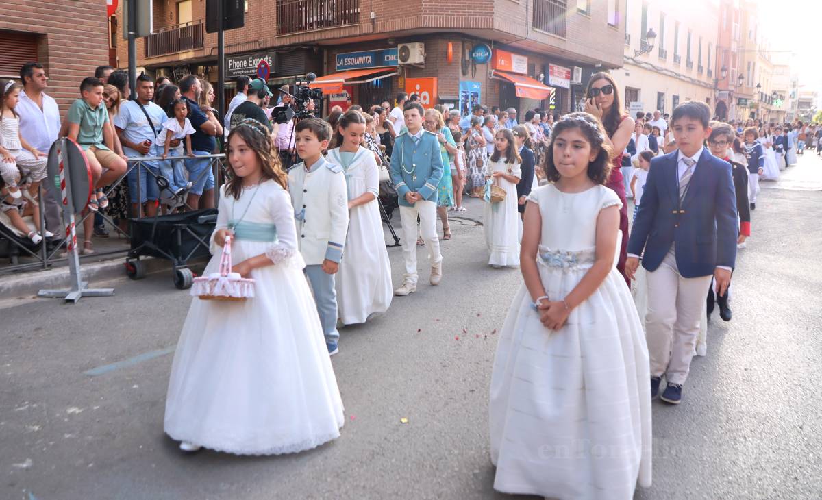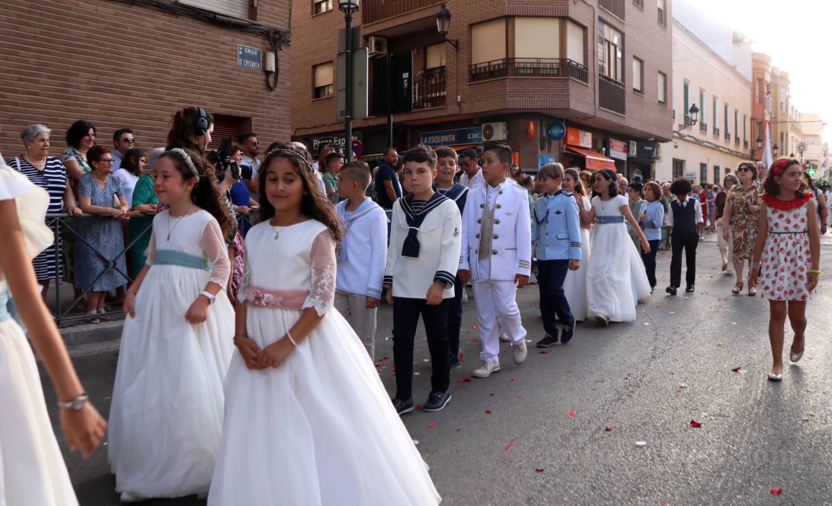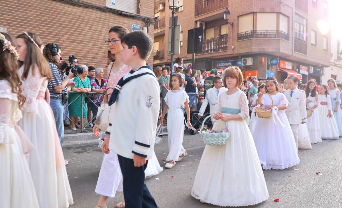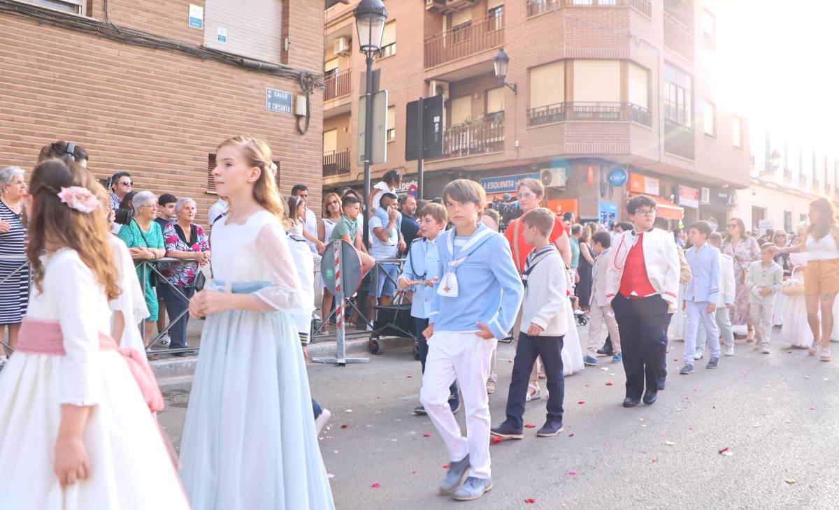 Abrieron la procesión todas las hermandades de Tomelloso, portando sus estandartes, seguidas por los niños y niñas que este año han recibido la Primera Comunión.