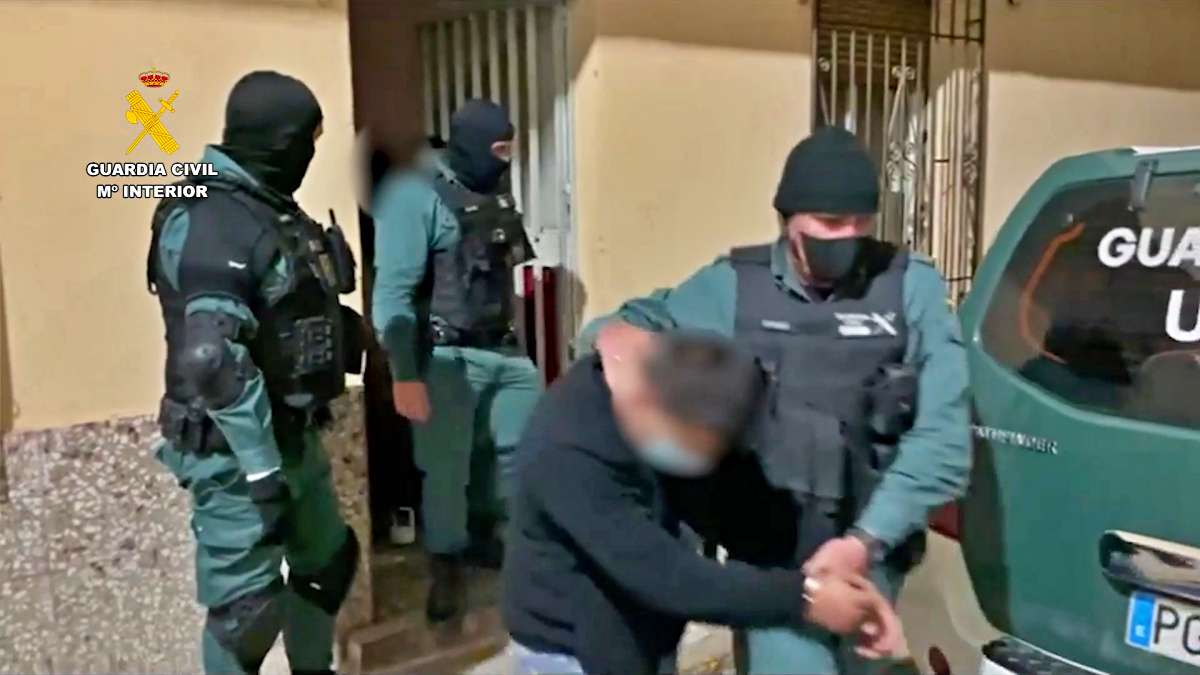 La Guardia Civil ha detenido a siete personas que formaban una organización criminal asentada en la localidad albaceteña de Madrigueras dedicada a extorsionar a migrantes en situación irregular a los que ofrecían contratos laborales falsos a cambio de pagos de hasta 12.000 euros por trabajar en explotaciones agrícolas.