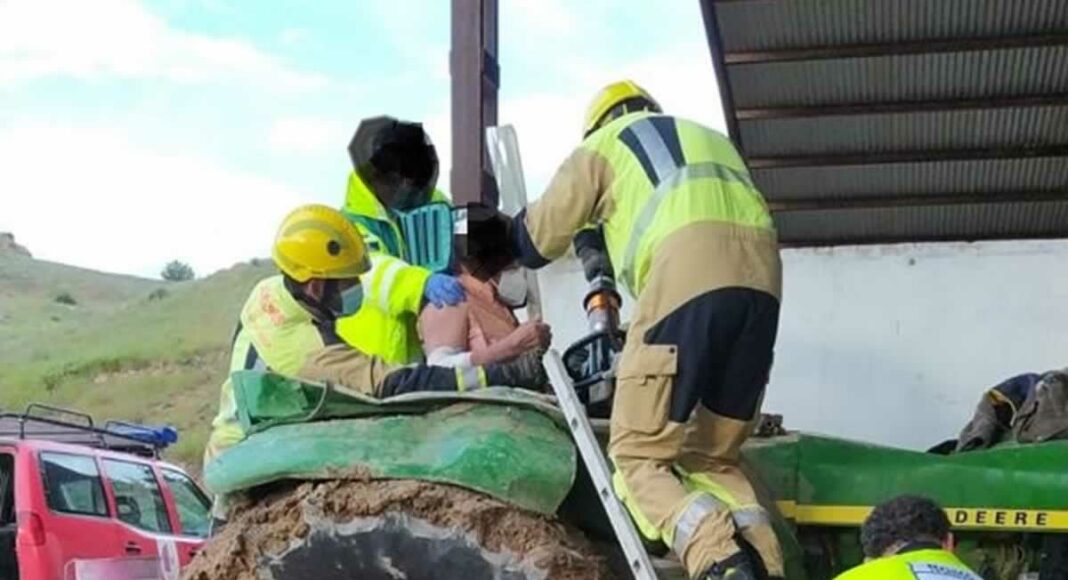 El suceso ha tenido lugar a las 17.56 horas cuando un tractor ha volcado en la CM-2026 en el kilómetro 0,500. Los bomberos han realizado un arduo rescate para excarcelar a este hombre y además han tenido que ayudar a la UVI que se ha desplazado para atenderlo.