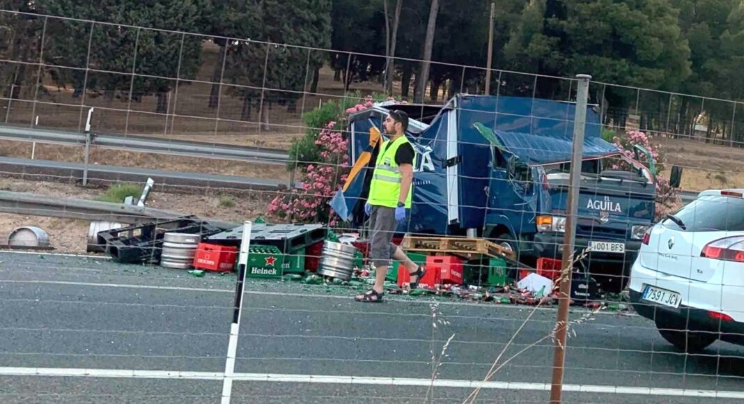 Con motivo del accidente, las cervezas que cargaba el camión han quedado esparcidas sobre la vía, provocando un atasco de entrada a la ciudad de Toledo que se prolongaba durante más de dos kilómetros.
