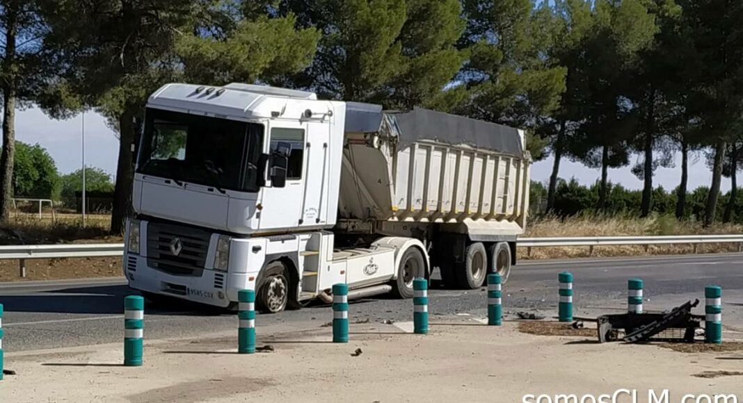 Durante la mañana de este martes, un vehículo de una autoescuela ha colisionado contra con un camión en la N-310, a la altura de la entrada de Argamasilla de Alba. El resultado del choque ha provocado que el camión luzca como aparece en la fotografía.