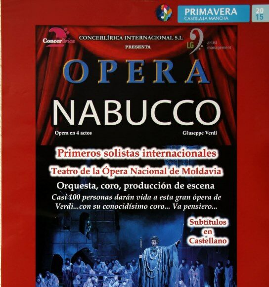 Nabucco, con música de Giuseppe Verdi, es una ópera en cuantro actos con subtítulos en castellano basada en el Antiguo Testamento cuenta con casi 100 personas sobre el escenario que darán vida a esta gran ópera con su conocido coro de esclavos y la orquesta de la ópera de Moldavia.