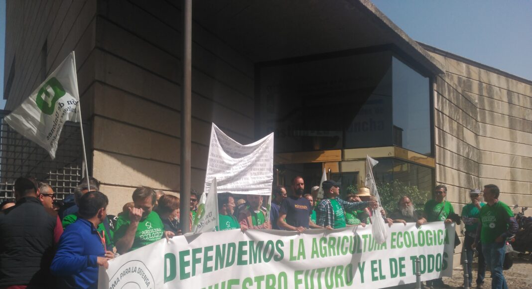La Plataforma de Afectados de la Agricultura Ecológica han exigido este miércoles en una concentración a las puertas de la Consejería de Agricultura, Medio Ambiente y Desarrollo Rural de Castilla-La Mancha una «solución ya al recorte ilegal» de las ayudas a la agricultora ecológica al presidente de la región, Emiliano García-Page y al vicepresidente segundo, José García Molina.