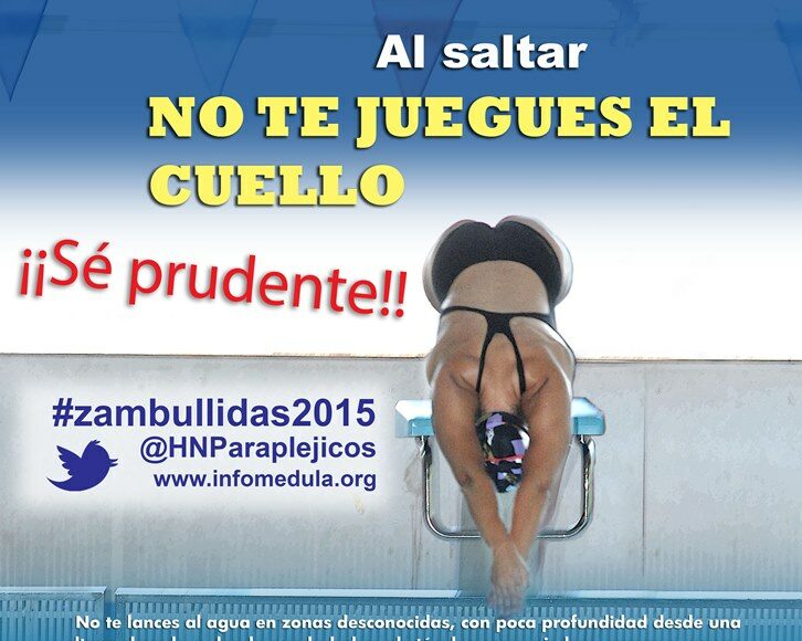 Un año más Parapléjicos utilizará las redes sociales como Facebook y Twitter (@HNParaplejicos) para la difusión de los mensajes de la campaña de prevención bajo el paraguas del hashtag #zambullidas2015.