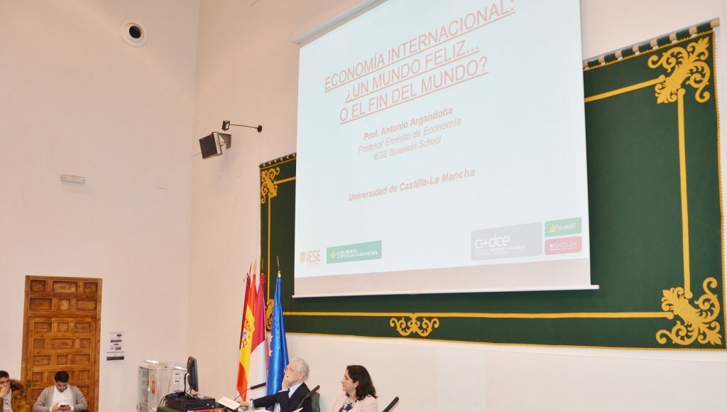 La Cátedra de Innovación y Desarrollo Cooperativo y Empresarial “Fundación Caja Rural Castilla-La Mancha-UCLM”, dentro de las iniciativas que promueve para acercar a los estudiantes contenidos y materias de relevancia, ha organizado una conferencia protagonizada por el profesor Antonio Argandoña que ha llevado por título “Economía internacional: ¿Un mundo feliz o el fin del mundo?”.