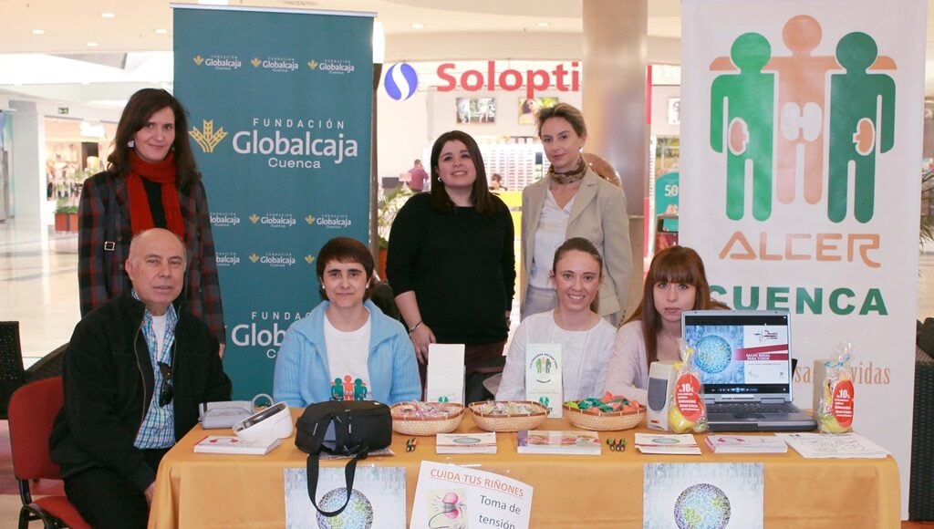 La Fundación Globacaja-Cuenca apoya y colabora con Alcer Cuenca, desde hace varios años, en su Programa anual de «Apoyo integral al enfermo renal; prevención y sensibilización social», en el que están integradas todas las actividades que la Asociación realizada a lo largo del año para la Lucha contra la Enfermedad Renal, con dos líneas básicas de actuación: la atención directa al enfermo renal y la información y sensibilización de la sociedad respecto de esta patología. Este apoyo la Fundación quiso mostrarla no sólo mediante la colaboración, sino mediante su presencia ayer en las actividades que Alcer Cuenca realizó en la ciudad.