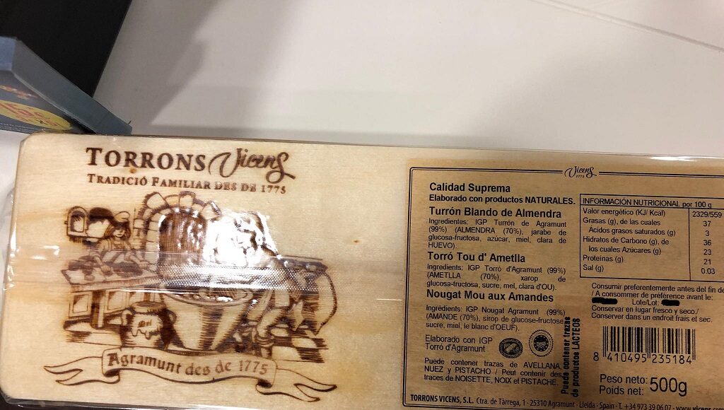 En concreto, se trata de un turrón de la compañía Vicens, que contiene leche no declarada en las unidades de 500 gramos, con fecha de consumo preferente: 02/2021 y número de lote: 329-X.