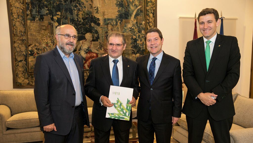 El presidente de la Junta de Comunidades, Emiliano García-Page, ha recibido del presidente de Caja Rural Castilla-La Mancha, Andrés Gómez Mora, y su director general, Víctor Manuel Martín López, la Memoria Anual de la entidad correspondiente al ejercicio 2015, que será presentada a la Asamblea General de socios de la cooperativa de crédito convocada para el 29 de abril.