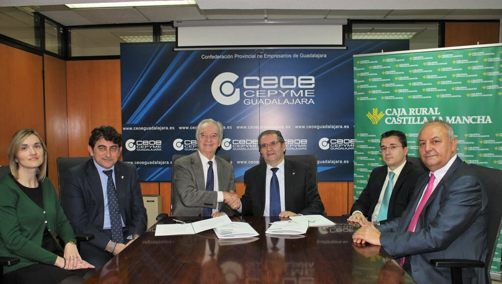 Así quedó plasmado en un nuevo convenio financiero de colaboración entre ambas entidades, firmado por el presidente de Caja Rural Castilla-La Mancha, Andrés Gómez Mora, y el presidente de CEOE-CEPYME Guadalajara, Agustín de Grandes.