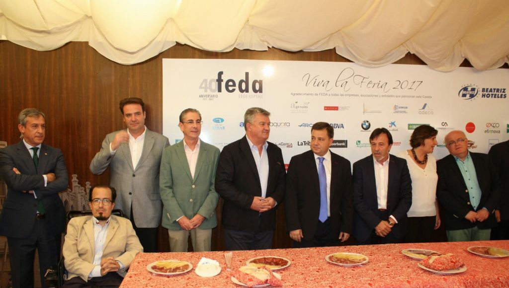 El presidente de Caja Rural Castilla-La Mancha, Javier López, visitó la caseta de la Confederación de Empresarios de Albacete (FEDA) en la Feria de la capital, mostrando su respaldo al sector empresarial y económico de la ciudad.