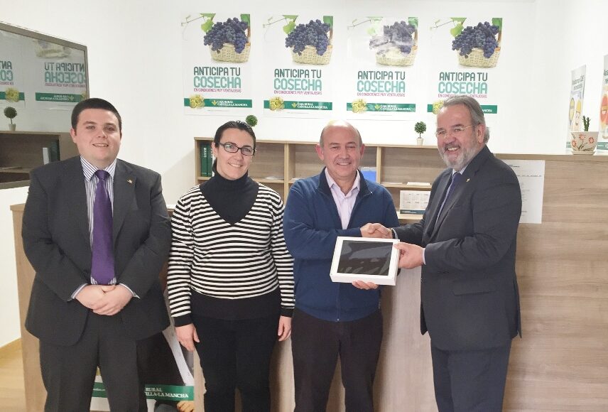 Caja Rural Castilla-La Mancha ha entregado a Vicente Padilla López, cliente de la entidad en la localidad albaceteña de Higueruela, un ‘Ipad Air 2’ tras el sorteo realizado ante notario con motivo del 50 aniversario de la cooperativa de crédito.