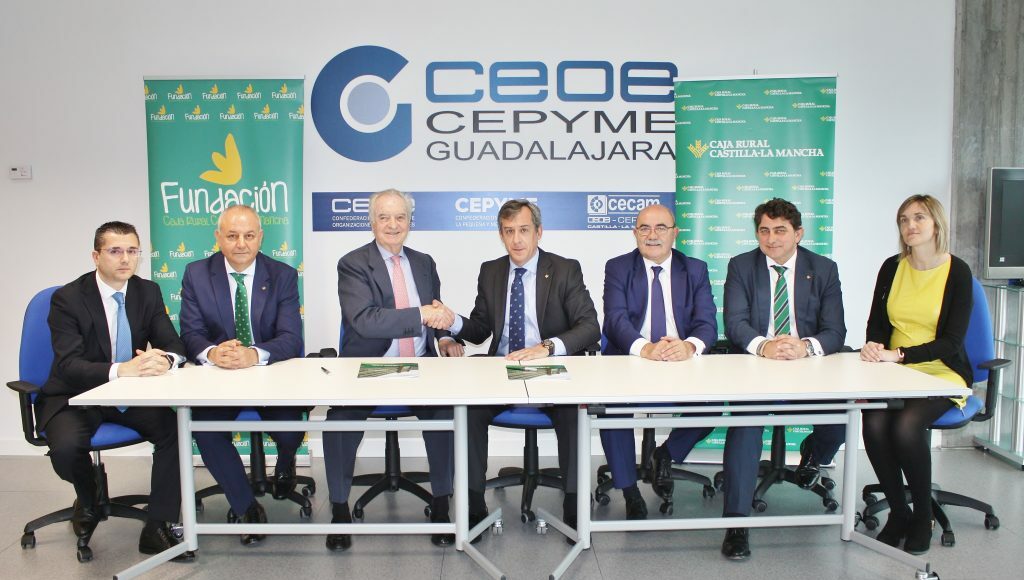El acuerdo fue rubricado por el presidente de Caja Rural Castilla-La Mancha, Javier López Martín, y el presidente de CEOE-CEPYME Guadalajara, Agustín de Grandes Pascual. Ambos responsables estuvieron respaldados durante la firma por el director de la División de Relaciones Institucionales, Miguel Ángel Escalante Pinel; el director territorial de la entidad en Guadalajara, Afrodisio García, y la directora de la Oficina Principal de Guadalajara, Estíbaliz Loza, así como por el vicepresidente de CEOE-CEPYME Guadalajara, Pedro Hernández, y el secretario general de la patronal, Javier Arriola.
