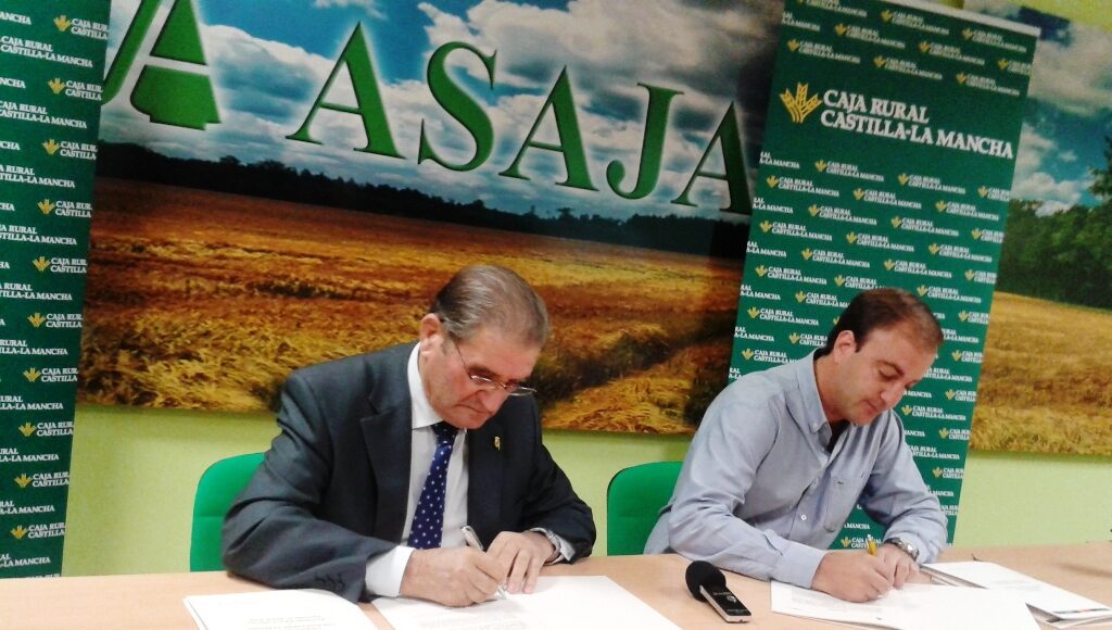 Así quedó plasmado en el primer convenio financiero de colaboración rubricado entre ambas entidades, firmado por el presidente de Caja Rural Castilla-La Mancha, Andrés Gómez Mora, y el de ASAJA-Ávila, Joaquín Antonio Pino, en la sede de esta organización agraria abulense.