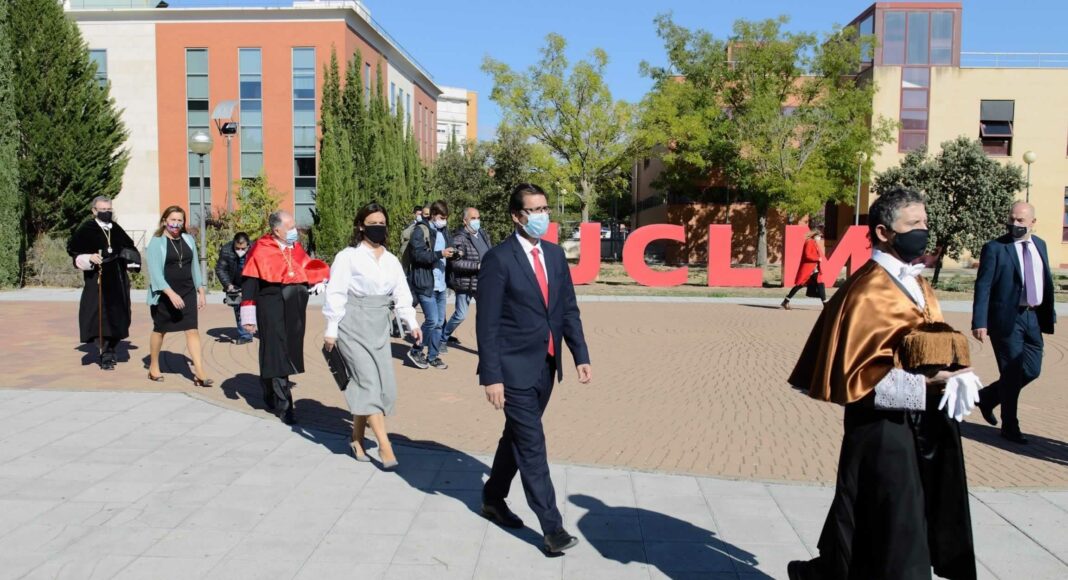 Por último, el secretario ha puesto de manifiesto las acciones solidarias surgidas en el seno de la comunidad universitaria en el inicio de la pandemia para luchar contra la enfermedad provocada por el virus SARS-CoV-2 y el programa de mecenazgo que lanzó la UCLM para apoyar económicamente esas y otras iniciativas y que consiguió recaudar más de 1.100.000 euros. A todo ello, sumó «el intenso» trabajo en materia de prevención y salud laboral que llevó a la UCLM a ser la primera universidad española en obtener la certificación AENOR frente a la COVID-19 en todas sus instalaciones.
