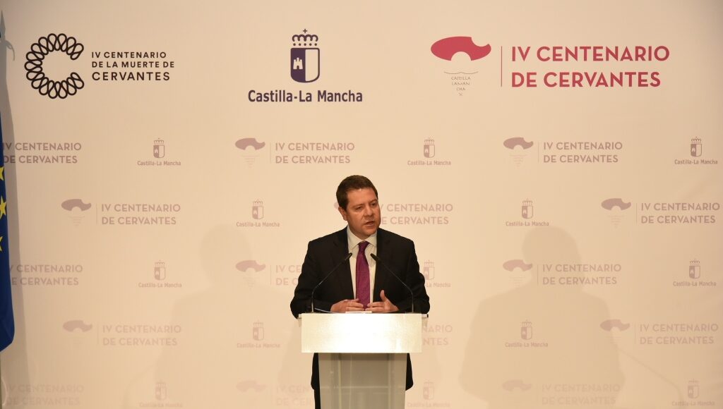 Así lo ha avanzado García-Page durante la presentación del programa oficial de actos con motivo del IV Centenario de la muerte de Miguel de Cervantes en Esquivias (Toledo); un acto en el que el presidente de Castilla-La Mancha ha estado acompañado por la alcaldesa de la localidad, Milagros del Barrio; la consejera de Educación, Cultura y Deportes, Reyes Estévez; la consejera de Economía, Empresas y Empleo, Patricia Franco; la directora general de Turismo, Ana Isabel Fernández; y el comisario regional las Actividades del IV Centenario de la Muerte de Cervantes, Gabriel González.