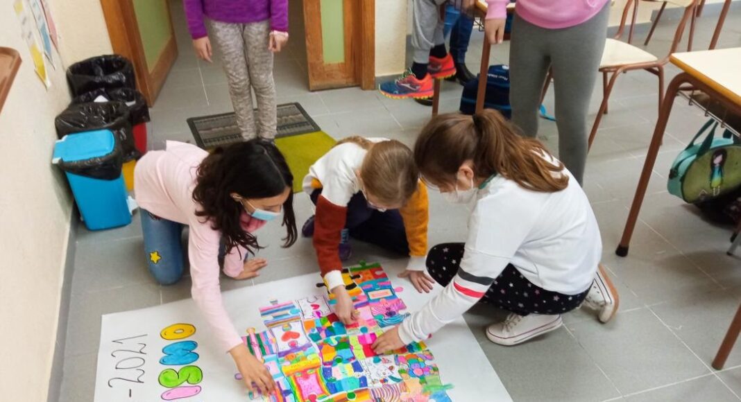 Para los centros de educación Infantil y Primaria, la propuesta se centraba en la realización de una sencilla actividad grupal en la que podía participar toda la comunidad educativa. Concretamente, se basaba en la composición de un mural en un espacio visible del centro elaborado a base de piezas de puzle, previamente enviadas a los centros.