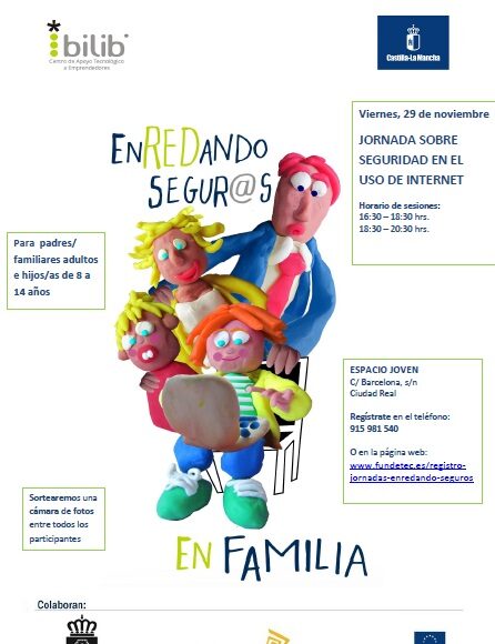 La Consejería de Fomento de Castilla-La Mancha  ha organizado dos nuevas Jornadas sobre Seguridad TIC para familias, enmarcadas en el proyecto EnREDando Segur@s, que se están desarrollando en toda la región a través del Centro de Apoyo Tecnológico “bilib”, y que en esta ocasión tendrán lugar en los municipios de Ciudad Real y Mota del Cuervo (Cuenca). El objetivo de estas charlas es concienciar a los menores de la necesidad de adoptar ciertos hábitos para utilizar la Red de forma segura, así como facilitar a los padres conocimientos, herramientas y pautas de comportamiento para controlar el uso que hacen sus hijos de Internet y guiarles por el camino adecuado.