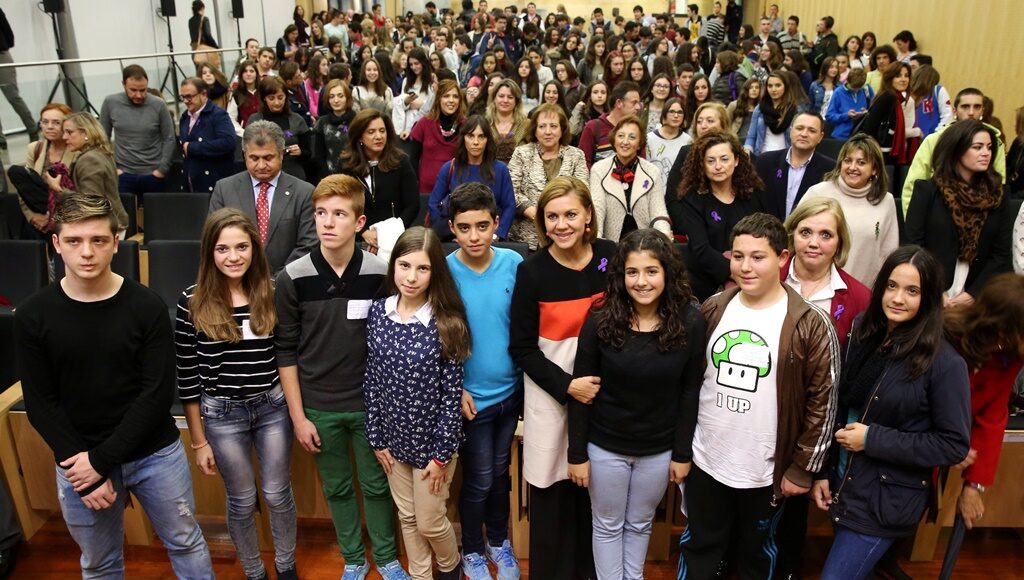 Durante su intervención en la clausura del acto institucional en el que se ha conmemorado el Día Internacional contra la Violencia hacia las Mujeres, celebrado en Toledo, que este año se ha dedicado a la prevención de la violencia en la adolescencia, Cospedal se ha dirigido a las alumnas y a los alumnos de diferentes institutos de la región presentes y les ha pedido que no estén dispuestos a aceptar esas conductas.