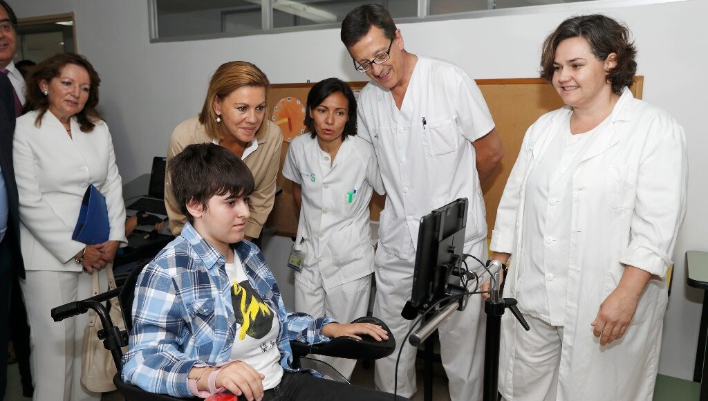 La presidenta de Castilla-La Mancha, María Dolores Cospedal, ha afirmado que la aplicación de las Nuevas Tecnologías permite que las personas puedan seguir formándose con independencia de sus capacidades. Cospedal se ha pronunciado así durante su intervención en el acto de presentación del Proyecto Adaptative, que Bankinter ha habilitado en el Hospital Nacional de Parapléjicos, y tras comprobar de primera mano la utilidad de sus aplicaciones tecnológicas para los estudiantes que son pacientes de este centro, entre las que destacan la pizarra digital de alta definición, la tableta adaptada a los equipos de seguimiento ocular y el sistema de conferencias de alta definición.