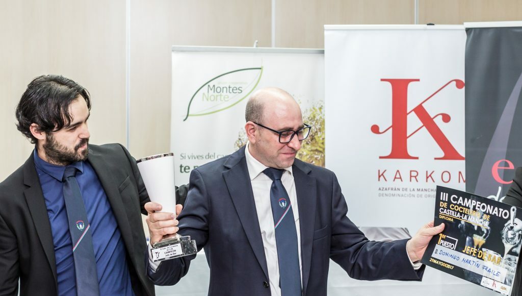 La emblemática Escuela de Hostelería de Adolfo Muñoz en Toledo, acogió este lunes el III Campeonato de Barmans de Castilla-La Mancha en sus distintas modalidades. El Talaverano Domingo Martín Fraile, propietario de la Sastrería Cocktail Bar, se hizo con el trofeo al mejor Barman en modalidad de Jefes de bar, de entre los 12 finalistas de esta competición que organiza la Asociación de Barmans de Castilla-La Mancha. Se proclamó campeón con el coctel En un lugar de La Mancha.
