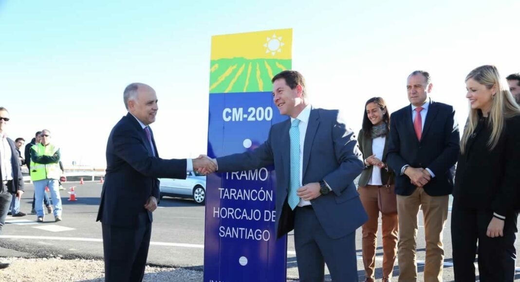 El presidente de Castilla-La Mancha, Emiliano García-Page, ha inaugurado esta mañana el nuevo trazado de la carretera CM-200, un tramo de 16,5 kilómetros de longitud situado entre la autovía A3, en término municipal de la localidad conquense de Tarancón, y el municipio de Horcajo de Santiago. El Gobierno regional ha invertido 3,8 millones de euros en esta obra a través de la Consejería de Fomento.