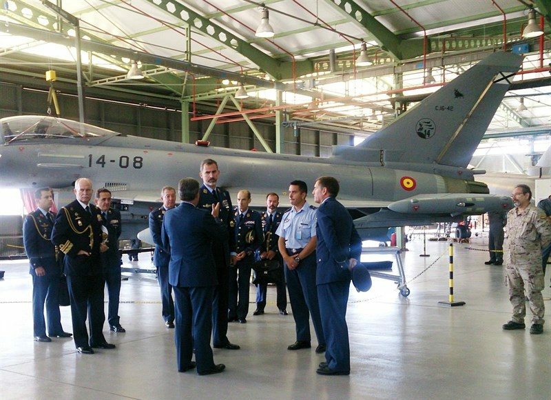 Su Majestad el Rey Felipe VI ha visitado este lunes el Ala 14 en la Base Aérea de Los Llanos (Albacete), donde ha supervisado la situación actual de la dotación del C-16 Eurofighter, que se desarrolla de forma activa y plena en Albacete desde abril de 2014, y que se encarga del adiestramiento del personal y del mantenimiento en estado operativo de los medios asignados para contribuir en la vigilancia y control del espacio aéreo de soberanía nacional.