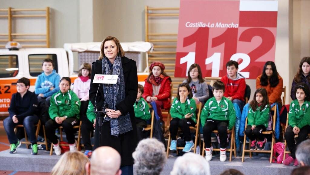 En esta celebración, Cospedal ha estado acompañada de alumnos de Educación Primaria del Colegio ‘Santa Rita’ de Mota del Cuervo (Cuenca) y del Colegio ‘Arqueólogo García Bellido’, de Villanueva de los Infantes (Ciudad Real), los centros en los que estudian las ganadoras del Concurso de Dibujo ‘¿Qué es para ti el 1-1-2?’, que este año cumple su tercera edición.
