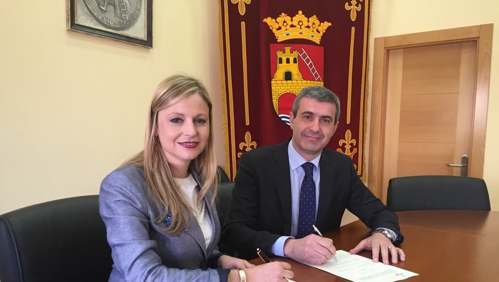 La consejera de Fomento del Gobierno de Castilla-La Mancha, Elena de la Cruz, y el alcalde del municipio toledano de Escalona, Álvaro Gutiérrez, han firmado hoy el convenio por el cual el ayuntamiento de esta localidad se suma a la red antidesahucios de la Junta de Comunidades.