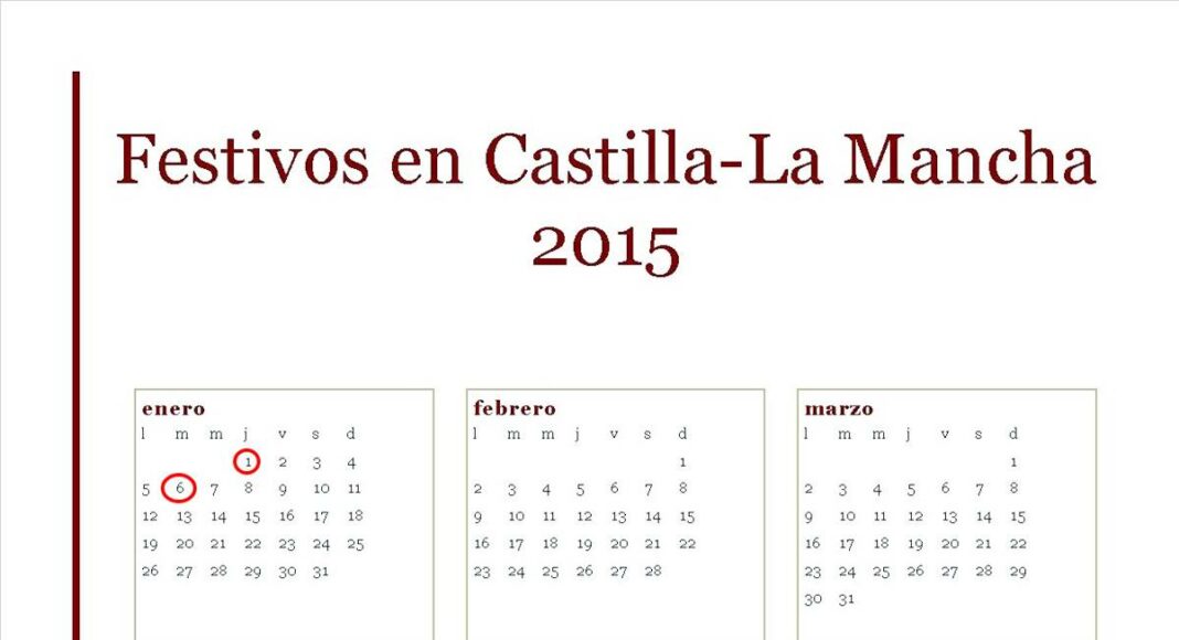 El calendario laboral para 2015 recoge ocho fiestas nacionales, una menos que en 2014, de las que sólo tres se celebrarán entre semana, permitiendo tomarse un puente largo: el jueves 1 de enero, el martes 6 de enero y el martes 8 de diciembre.