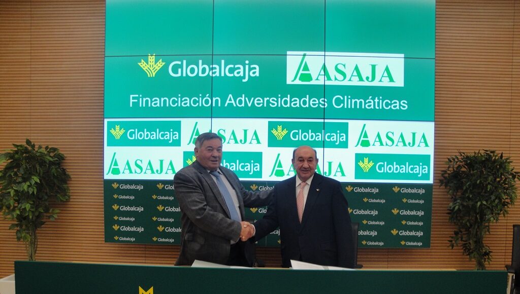 Higinio Olivares, presidente de Globalcaja y José Pérez Cuenca, presidente de Asaja en la provincia de Albacete, han suscrito un convenio de colaboración que da respuesta y servicio al sector agrario, en todo lo referente a las adversidades climáticas que han padecido agricultores y ganaderos durante los últimos meses. De nuevo ambas entidades ofrecen todas las facilidades al sector y ponen una línea de financiación, en condiciones preferentes y específicas, a las necesidades de cada uno de los demandantes de la misma.
