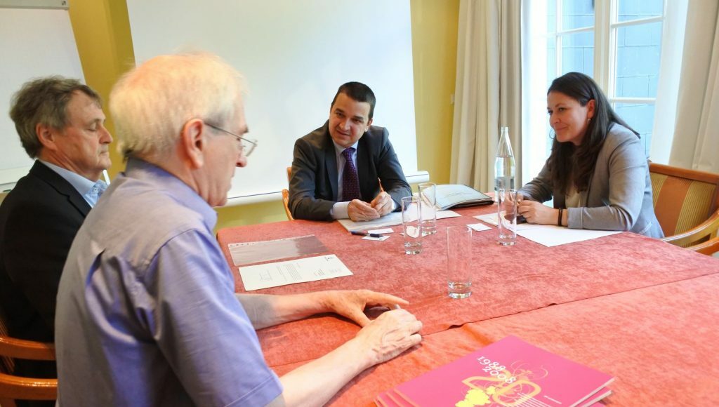El consejero de Agricultura, Medio Ambiente y Desarrollo Rural, Francisco Martínez Arroyo ha formalizado hoy la presentación de la candidatura de Emiliano García-Page al frente de la Asamblea de Regiones Europeas Vitivinícolas (AREV), en una reunión con el secretario general de la AREV, Dominique Janin y el representante de los viticultores europeos, Aly Leonardy en Luxemburo. Tras la reunión, antes de finalizar el período de presentación de candidaturas, el consejero se ha mostrado optimista respecto a la posición de Castilla-La Mancha para que salga adelante, después de haber obtenido el apoyo de la Comunidad Autónoma de La Rioja, en nuestro país, y un amplio consenso con el resto de las regiones europeas. La votación será el 11 de julio en el plenario de la AREV en Estrasburgo y el día 12 se celebrará el Comité de las Regiones ya con el nuevo presidente. Martínez Arroyo ha pedido el apoyo de las seis comunidades autónomas españolas presentes en la AREV para que voten a favor de Castilla-La Mancha; así como del resto de regiones europeas.