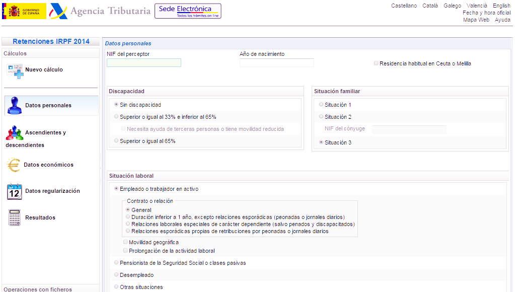Así, con este programa de ayuda los ciudadanos podrán saber cuál es la retención del IRPF que debe aplicarle su empresa en función de sus condiciones personales y laborales, con solo consignar sus retribuciones brutas anuales y su situación personal y familiar.