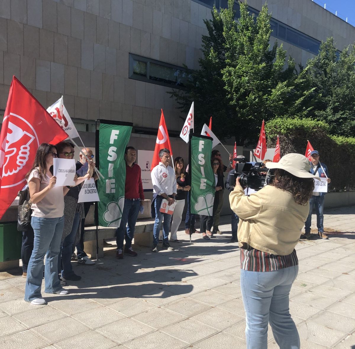 FSIE, UGT, USO y CCOO han iniciado este martes una serie de concentraciones públicas para «visualizar la injusticia» que la Consejería de Educación, Cultura y Deportes está cometiendo con la enseñanza concertada en la región, que reclama una mesa de diálogo en la que abordar una serie de reclamaciones, como aplicar la jubilación parcial, la reducción de carga lectiva y cobrar una paga de antigüedad.