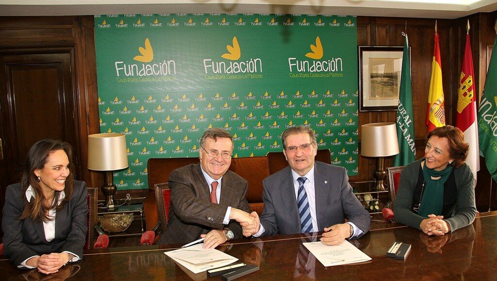 El presidente de Caja Rural Castilla-La Mancha y su Fundación, Andrés Gómez Mora, renovó hoy con el presidente de la Diputación de Toledo, Arturo García-Tizón, el convenio de colaboración para la celebración de la XXI Gala del Deporte el sábado 8 de febrero a las 20,00 horas en el Auditorio de la entidad financiera.