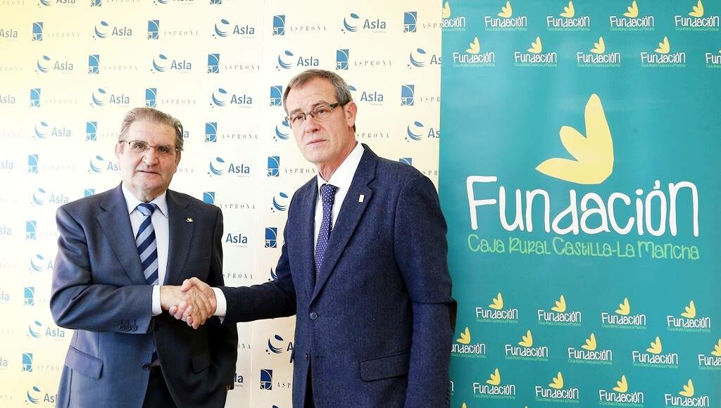 El acto ha tenido lugar en las instalaciones de la Fundación ASLA, en el polígono Romica de Albacete, al que han asistido el presidente de Caja Rural Castilla-La Mancha y de su Fundación, Andrés Gómez Mora, y el presidente de la Fundación ASLA, Lucio Gómez Salazar, además del resto de miembros del patronato y responsables de la entidad financiera, como el director de la División de Relaciones Institucionales y Cooperativas, Miguel Ángel Escalante Pinel, el director territorial en Albacete, Pedro Berrocal Bernal, y la directora de la oficina de Albacete Urbana I, Milagros Flores Leal.