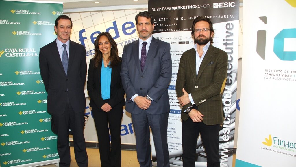La Fundación Caja Rural Castilla-La Mancha, a través del Instituto de Innovación y Competitividad, en colaboración con CECAM, ha celebrado esta tarde la jornada de presentación del Programa de Negocio Digital e-DIR. La presentación del programa ha ido acompañada por la ponencia “El reto de la pyme: innovar y adaptarse a entornos digitales”, impartido por ESIC Business & Marketing School y su Instituto de Economía Digital -ICEMD-.