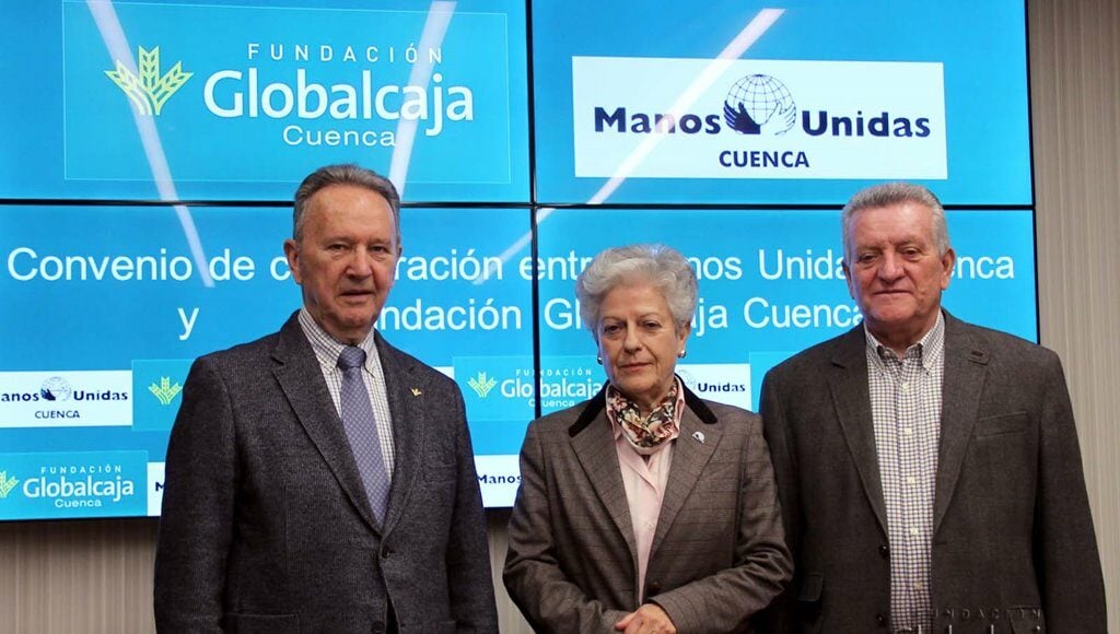 La Fundación de Globalcaja ha firmado un convenio con la delegación de Manos Unidas en Cuenca, con la finalidad de colaborar en las actividades y acciones que esta institución está desarrollando durante este año 2016. El acuerdo ha sido suscrito por Carlos de la Sierra y Encarnación Pérez, presidentes, respectivamente, de ambas entidades, en la sede de la Fundación de Globalcaja en Cuenca, con la presencia de Ángel Hernáiz, tesorero de la Delegación conquense de Manos Unidas.