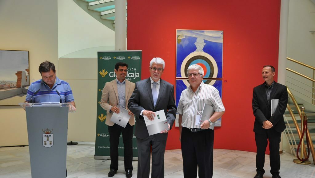 El director de la Fundación Globalcaja Albacete, Francisco Martínez Ortuño; junto con el alcalde de Albacete, Javier Cuenca; el concejal de Cultura del Ayuntamiento de Albacete, Manuel Serrano; y Luis Mayo, miembro del jurado; han entregado el premio de la XII edición de la Bienal de Artes Plásticas de Albacete. La obra ganadora ha sido “Cádiz desde correos” cuyo autor es Eduardo J. Millán Sañudo.