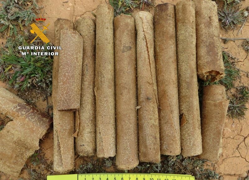 Además, destaca también el hallazgo de nueve cartuchos de dinamita y un manojo de mecha lenta hallados en un domicilio de Pozohondo (Albacete), que han sido localizados durante las tareas de limpieza de la cámara de una vivienda, ocultos tras una pared y en avanzado estado de deterioro.