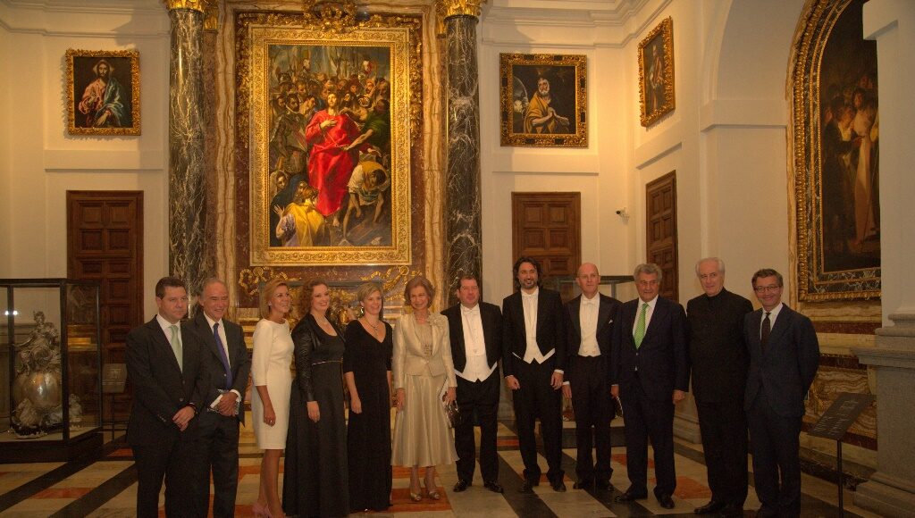 Doña Sofía, acompañada por la presidenta de Castilla-La Mancha, María Dolores de Cospedal; el presidente del Congreso, Jesús Posada; el fiscal general del Estado, Eduardo Torres-Dulce, y el arzobispo de Toledo, Braulio Rodríguez, han asistido a este concierto organizado por la Fundación El Greco 2014, en el marco de los actos que conmemoran el cuarto centenario de la muerte del pintor cretense.